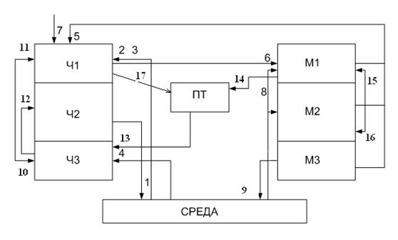 структурная схема «Ч–М–С». На ней указаны внешние связи: управляющее