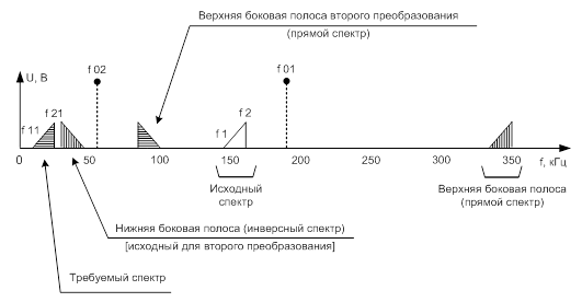 напряжение и частоту верхней и нижней составляющих боковых колебаний
