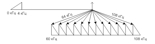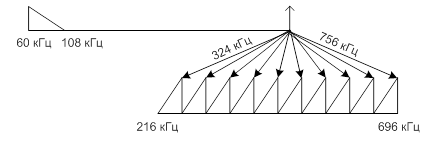 полоса пропускания первичного широкополосного канала 60 – 108 кГц.