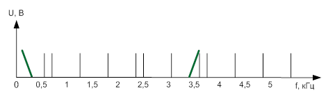 составляющие боковых полос и их амплитуды и построим спектрограмму