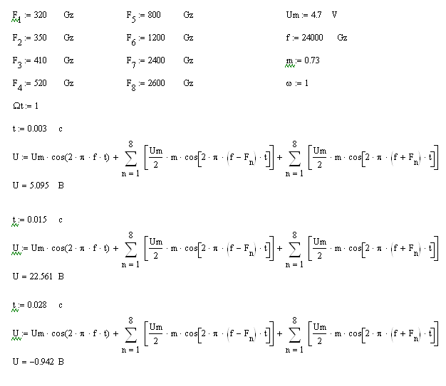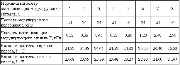модулированного сигнала при заданных составляющих модулирующего сигнала.