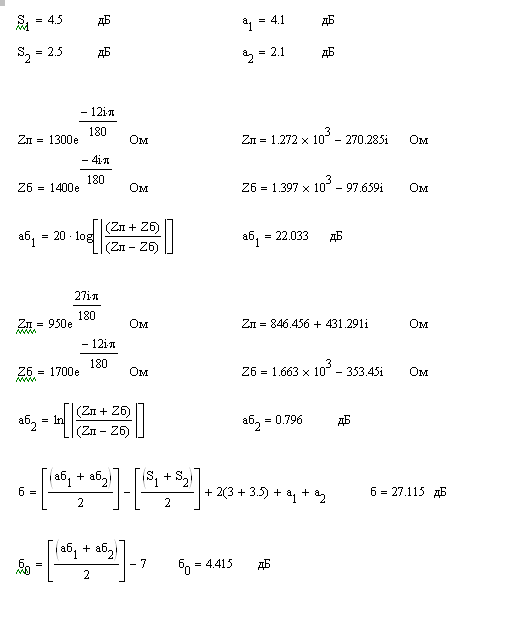 значение балансовых затуханий дифсистем, а также по формулам (2.9) и (2.10)