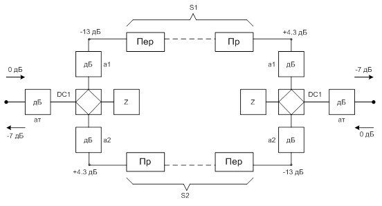 связи будет меньше, чем сумма всех затуханий, включённых в эту цепь. Поэтому в