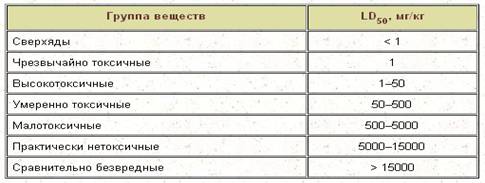 летальной дозы возможна классификация ОВ по токсичности. В этой классификации