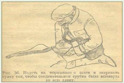 Надевание противогаза на отравленного выполняется так: а) вынуть противогаз из