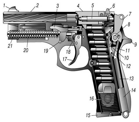 постійно напружених пружин, тоді як у пістолеті постійно напружена, принаймні,