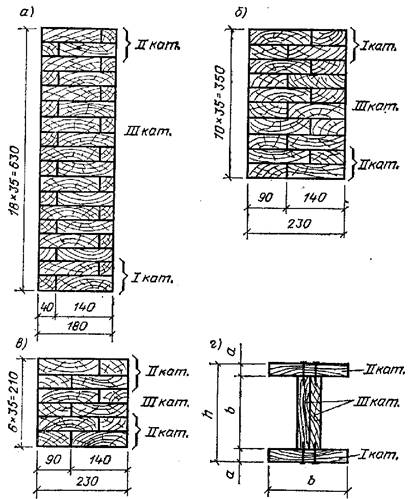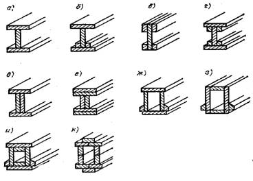 12. Сечение армированных клееных деревянных балок: а – прямоугольной; б в – двутавровой;