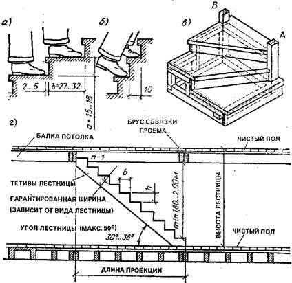 междуэтажных лестниц – 30…36°. Во внутриквартирных лестницах уклоны до 50°.