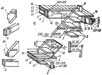 (затяжку) (рис. 14). Узлы ферм усиливают пластинками из клееной фанеры