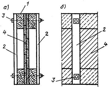 слоев досок (22×83 мм); 2 – нижняя затяжка из четырех слоев досок
