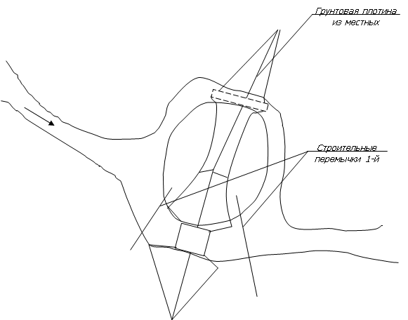 Пропуск строительных расходов осуществляется через трубы уложенные в левом