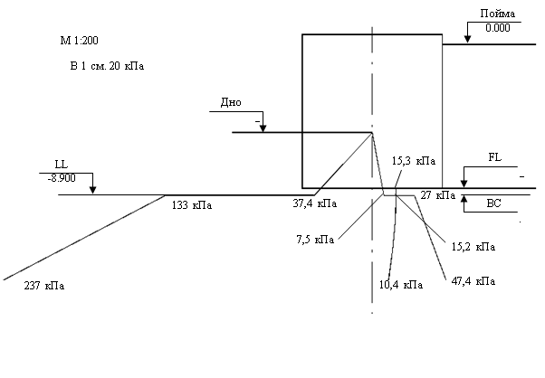 давление воды и взвешенного грунта ниже дна реки и котлована (рисунок 6.3).