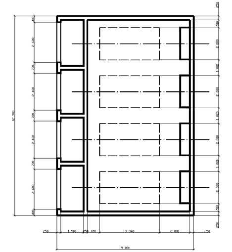 стенами из монолитного железобетона t=0,25 м; 2 - передняя стена с