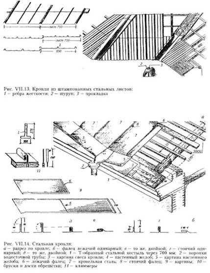 предохраняющие от растекания воды поперек ската; однако в продольных стыках