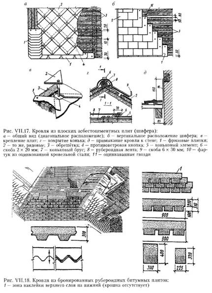 декоративны кровли из бронированных рубероидных плиток или полосок, покрытых