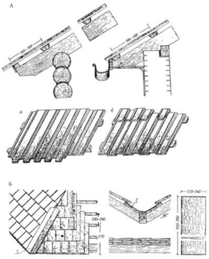кровли выполняются из теса, гонта, драни и щепы. Первые два типа