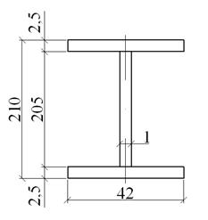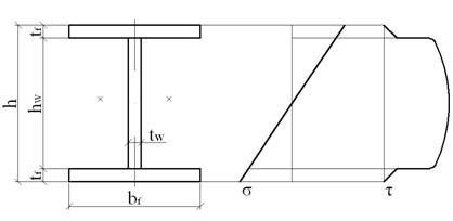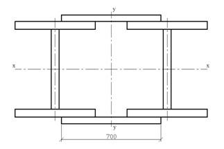двутавров 55Б1: А = 226 см2; Ix = 37160 см4; Iу = 1630 см4 ix = 16 см; iу = 4,22 см; масса 1 м.п. = 0,890 кН
