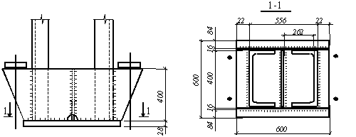 прикрепления ребер к траверсе и траверсы к стенке:
