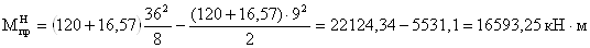 Изгибающий момент на участке,