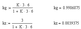 решая полученное уравнение относительно K, входящего в выражения для Kg и Kz, определяют коэффициент усиления САУ