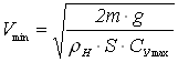 скорость установившегося горизонтального полета Vmin теор