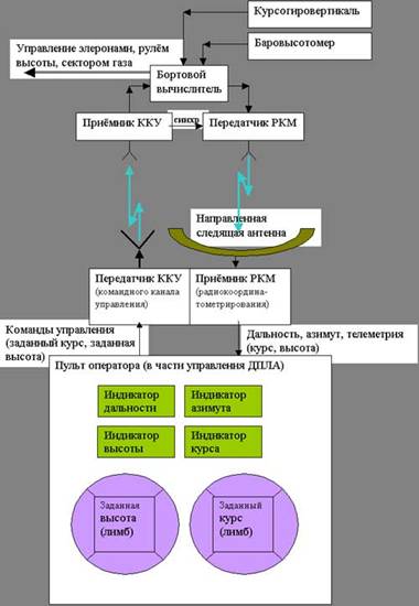 расстояние до 50 км. Заданный курс поступает по командному каналу управления в
