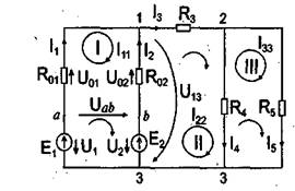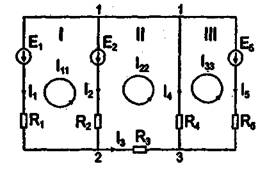электрической схеме, представленной на рис. 1.2, три узла (q = 3), пять ветвей (p = 5), шесть контуров и три