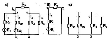 источники ЭДС в цепи закорочены, как показано на рис. 1.4, в.
