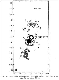 вытянутая форма радиоисточника галактики NGC 1275 (не ядра) свидетельствует о том, что радиооблака