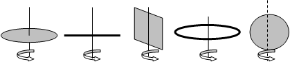 Рис.1. Моменты инерции некоторых тел для указанных