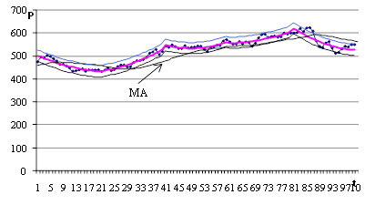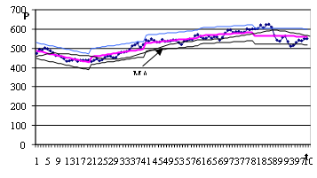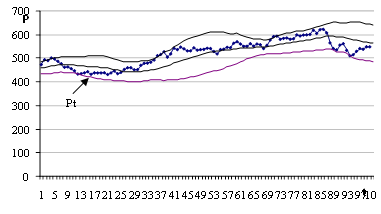 Алгоритм выделения тренда и построения доверительных полос для цены акции,