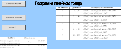 расчетов методом Регрессия с переключениями - линейный полином
