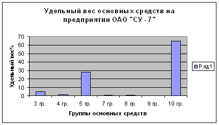 ОАО «СУ-7» занимает 10 группа «Здания», наименьший – 9 группа «Прочие основные