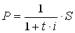 эквивалентная выплате S сумма составит величину Р, которая при дробном измерении