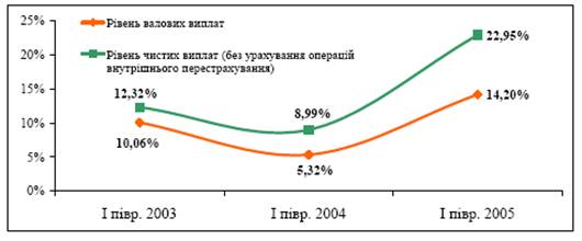 (відношення валових виплат до валових премій) у I півріччі 2005 року досяг 14,2%