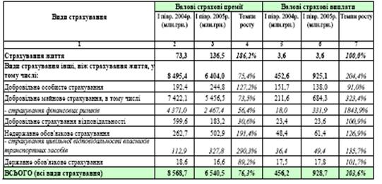 Стан і розвиток страхового ринку України за I півріччя 2005