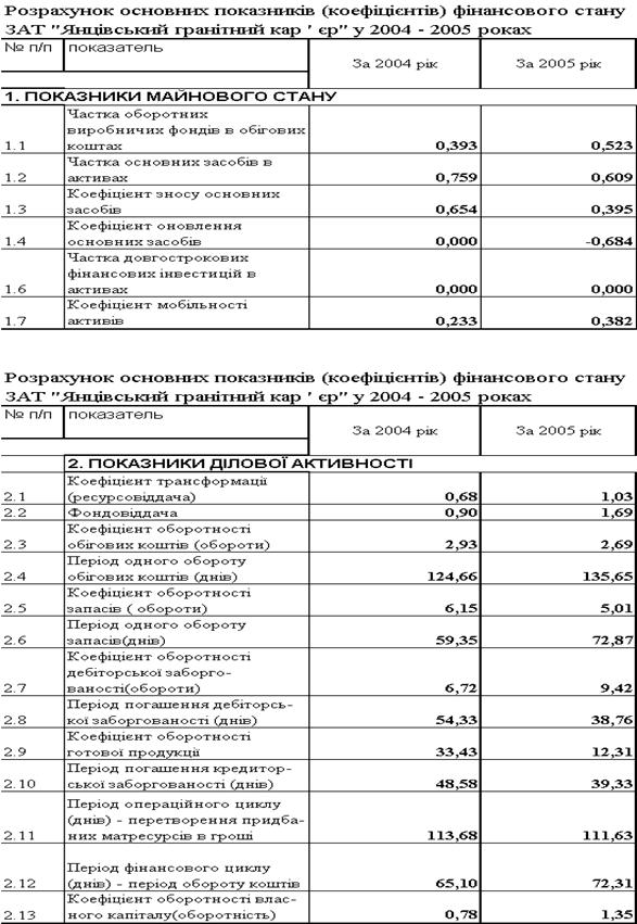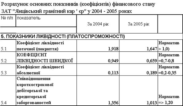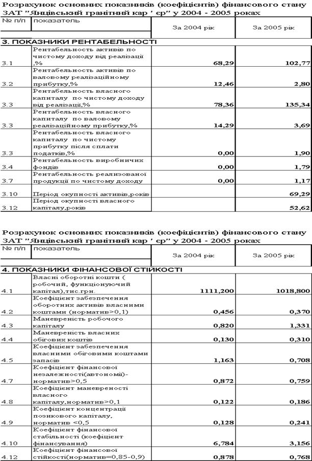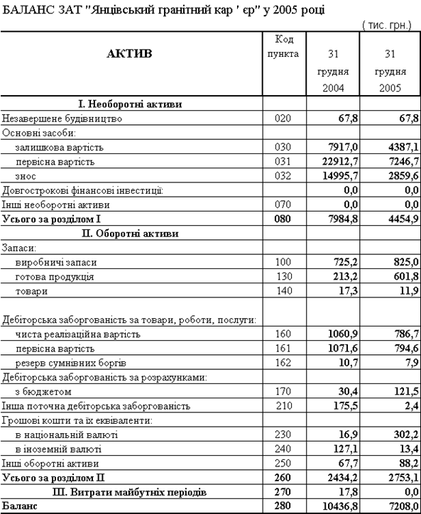 “Янцівський гранітний кар ' єр” за 2004 –2005 роки