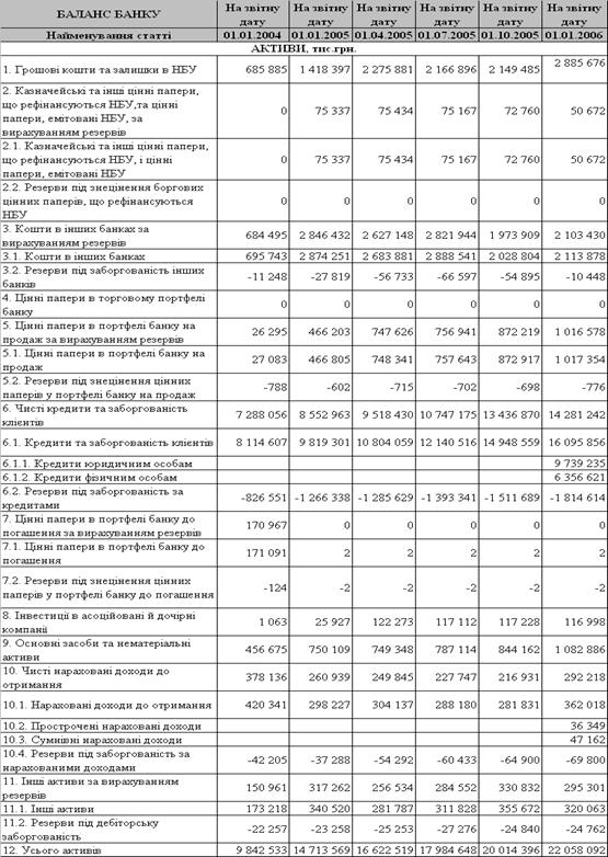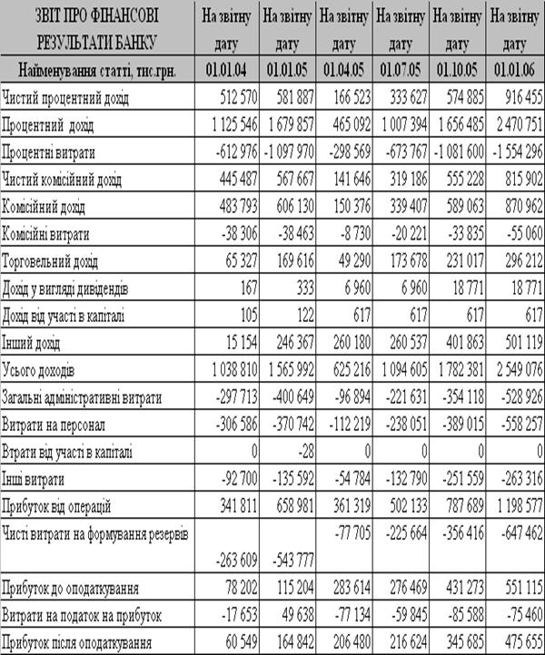 2001-2006 роки, інформаційні аналітичні бази Національного банку України та