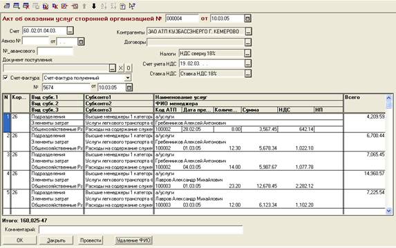 менеджеру и отделу предприятия, которые пользовались транспортом, заносятся