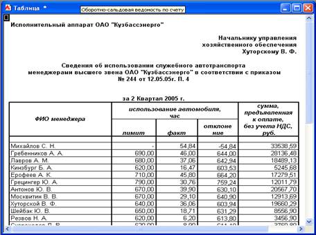 Курсовая работа: Автоматизация формирования отчета по использованию автотранспорта менеджерами предприятия