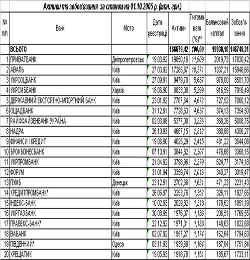 системі України та індивідуально в комерційному банку АППБ „Аваль”.