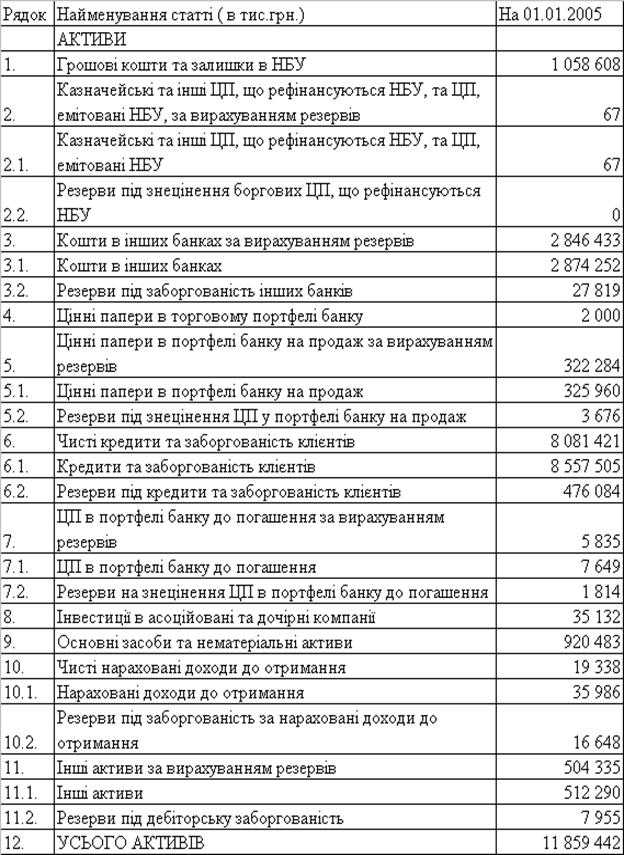 Звітний баланс АППБ “Аваль” станом на 01.01.2005 року