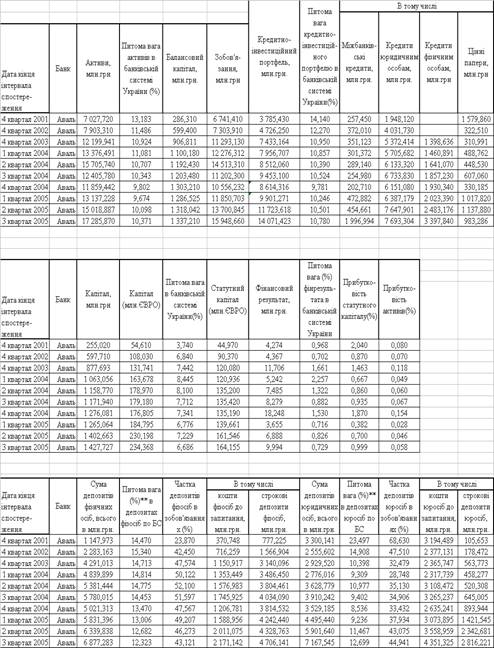 Інформаційно-методологічна база досліджень — звітні документи АППБ „Аваль”, статистичні таблиці