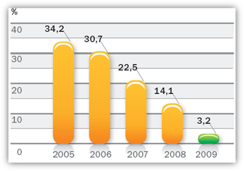 2009 года пришелся пик мирового экономического кризиса. В I квартале в