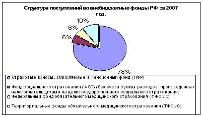 Структура поступлений в основные внебюджетные фонды РФ в 2007 году.