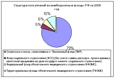 Структура поступлений в основные внебюджетные фонды РФ в 2008 году.