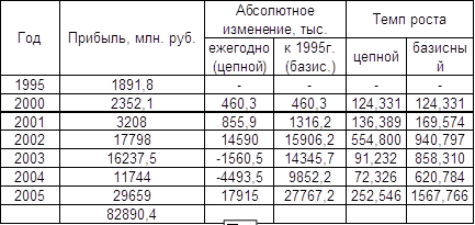 прироста, с 1995г. по 2003г. увеличивается, причем резкий рост прибыли замечен