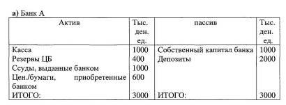 внесли на вклад до востребования наличными сумму 1000 ден.ед. Резервы