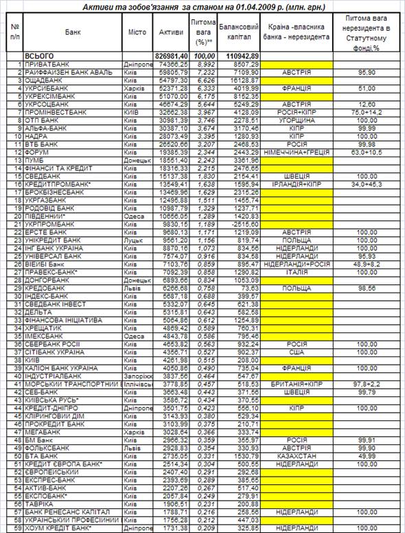 банків України, аналітичні рейтингові матеріали агентства «Простобанк»,