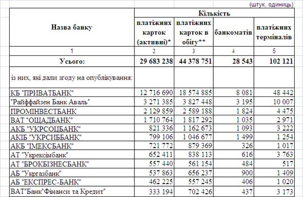 карток у банках України //Постанова Правління Національ-ного банку України від